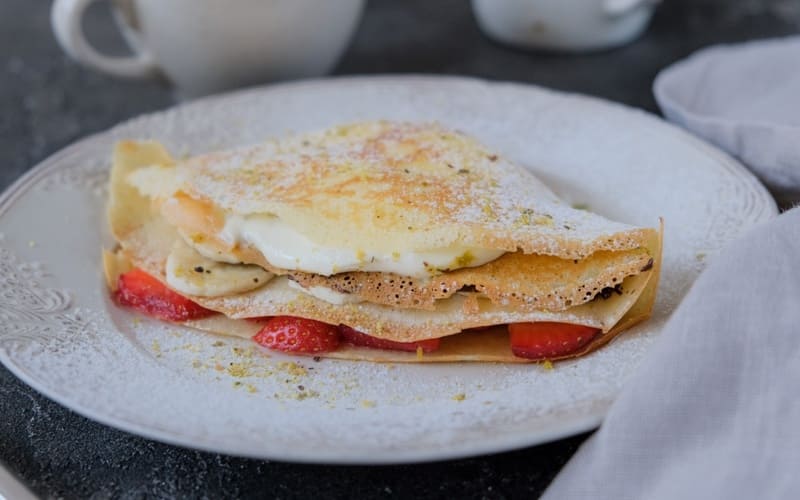 فطائر رقيقة بحشوات حلوة متنوعة: جبنة قريش بالزبيب، تفاح بالقرفة، كرز. تقدم مع الكريمة الحامضة أو الشراب المفضل لديك. هذه